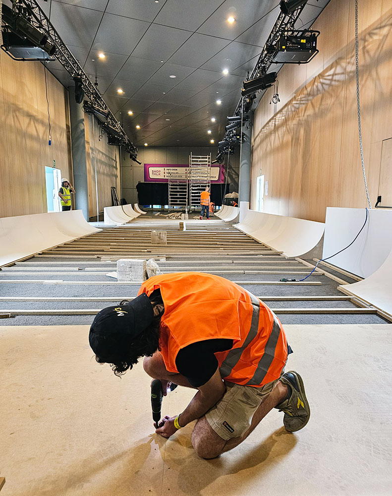 Gestión, construcción, montaje, rotulación e iluminación integrada en la escenografía del pasillo de 25m que da la bienvenida al evento.